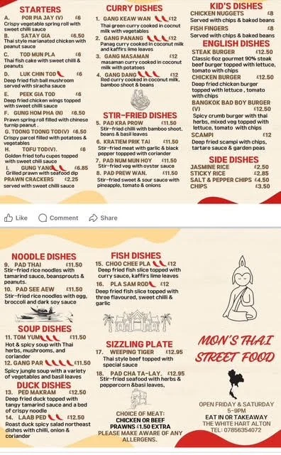 Mon's Thai Street food Every Thursday & Friday
